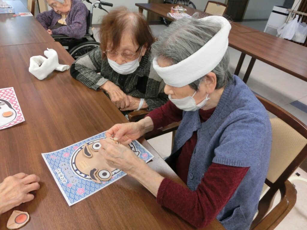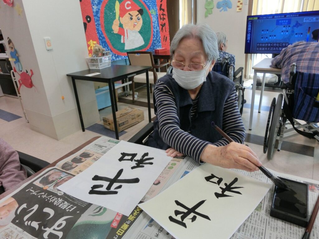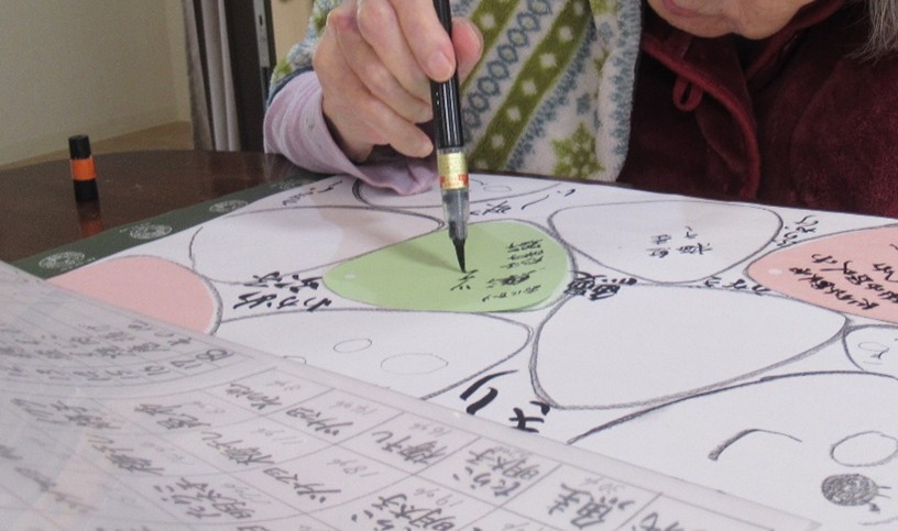 新しい年を迎え、書き初めや福笑いなどのお正月遊びを楽しまれました。