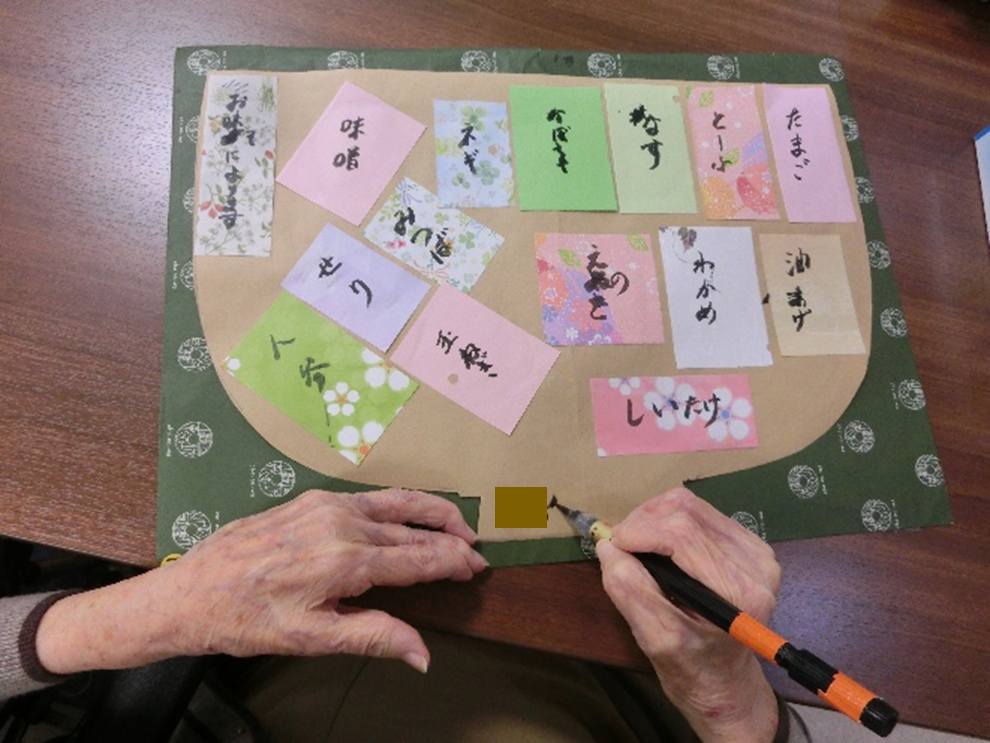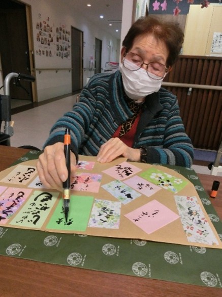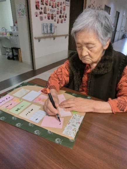 新しい年を迎え、書き初めや福笑いなどのお正月遊びを楽しまれました。
