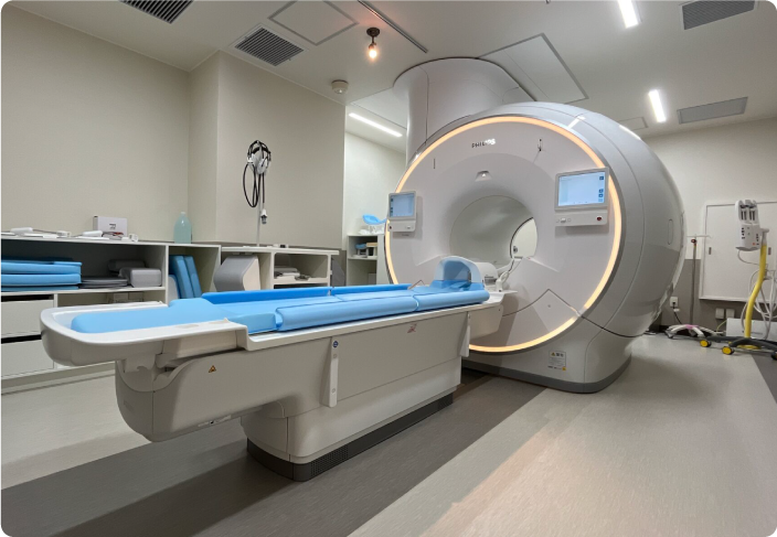 MRIは強力な磁石と電波を用いて、身体のさまざまな角度の断面を画像にする装置です。X線を用いないため、放射線被ばくのリスクなく検査が行えます。